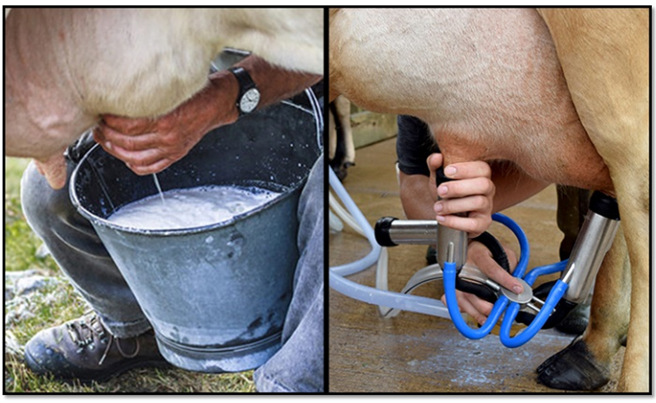 The milking process is the collection of milk from an animal by hand or by milking machine specially designed for it. The milking process through milking machines is divided into different steps. Such as, inspection and cleaning of teats, attachment of milking equipment to teats, and massaging the udder, extraction of milk and then removing milking equipment. Milking machines are designed for rapid and efficient extraction of milk without damaging the teats or glands. Also, with minor risk of transferring pathogenic microorganisms that might cause mastitis.