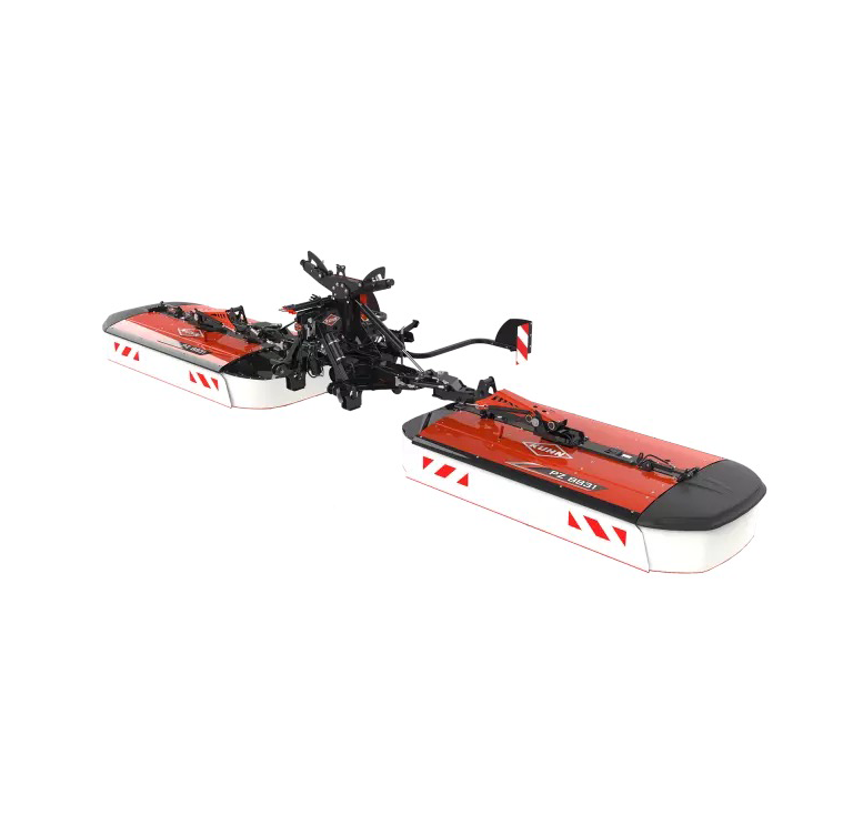 KUHN PZ front-mounted drum mowers ensure a clean cut and create large, fluffy swaths for efficient drying. Combining front-mounted and rear-mounted machines increases working speeds and efficiency.
