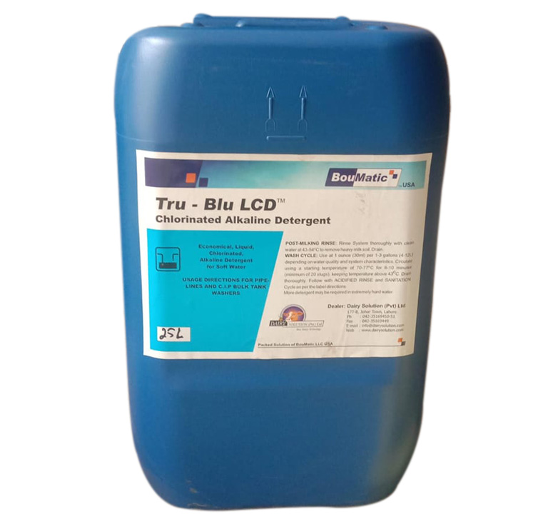 The Tru-Blu LCD™ is a high-performance, economical, non-foaming chlorinated alkaline detergent specifically designed for soft water systems. Its advanced formulation ensures effective cleaning of milk fat and protein residues while providing exceptional value in high-quality CIP (Clean-In-Place) systems.