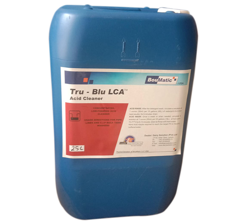 The Tru-Blu LCA™ Acid Cleaner is a non-foaming, economical cleaning solution designed specifically for use in low-buffered, high-quality soft water systems. Its powerful formulation ensures effective cleaning while preventing mineral buildup and milkstone deposits. Ideal for both manual and CIP (Clean-In-Place) cleaning processes, it delivers exceptional value without compromising performance.